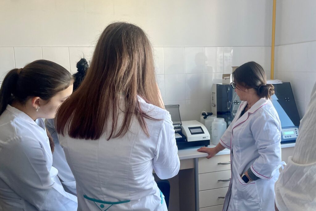 Завідувачка науково-дослідного відділу контролю кормів, кормових добавок та продуктів рослинного і тваринного походження Галина Рудик представила основні напрямки діяльності Інституту та окреслила ключові компетентності, необхідні для роботи у відповідній сфері. Студенти ознайомилися з особливостями роботи науково-дослідного відділу контролю кормів, кормових добавок та продуктів рослинного і тваринного походження, а також лабораторії клініко-біологічних досліджень. Окрему увагу було приділено питанням біобезпеки при роботі з генетично модифікованими організмами та методам визначення вмісту ГМО у продукції рослинного й тваринного походження.